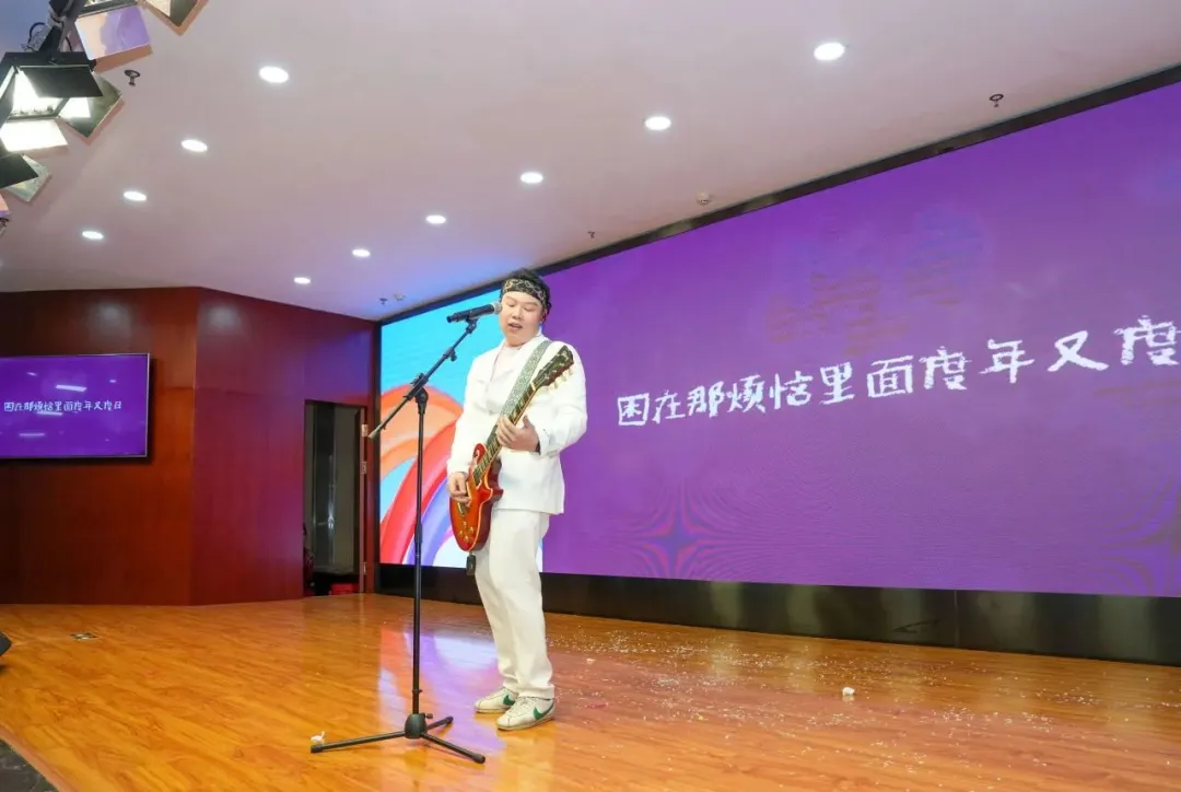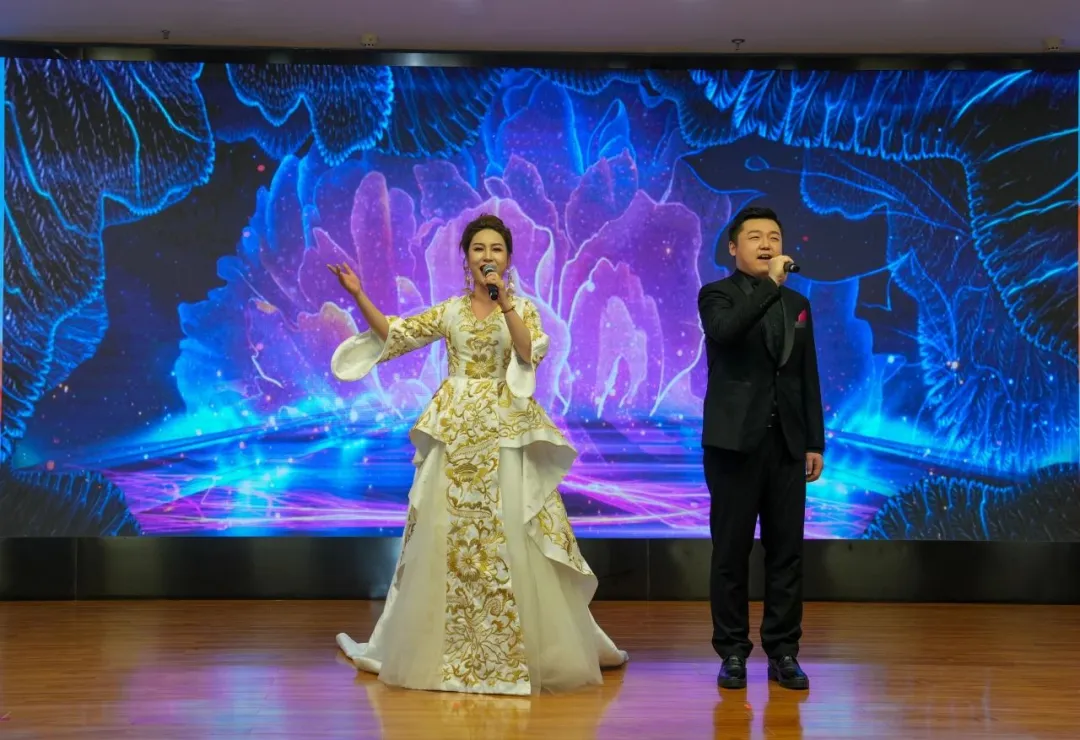 長江電氣創業家代表張金華為企業職工演唱了歌曲《上長電》,深情贊美了追求卓越的長電人。