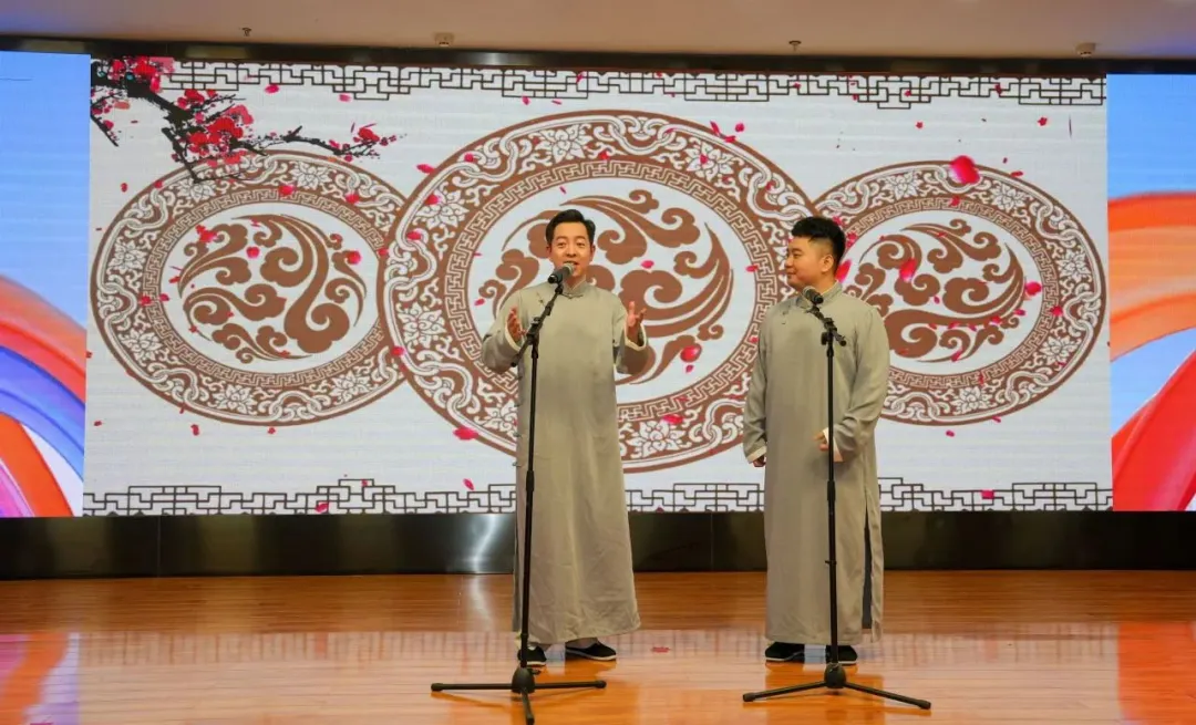 湖北省群眾藝術館優秀青年演員劉雄、湖北省優秀曲藝演員朱冬文表演的相聲《笑語歡歌》,普通話、武漢話、黃陂話多種語言自由切換,并用京劇的聲腔唱搖籃曲,惟妙惟肖的表演逗得現場觀眾開懷大笑。