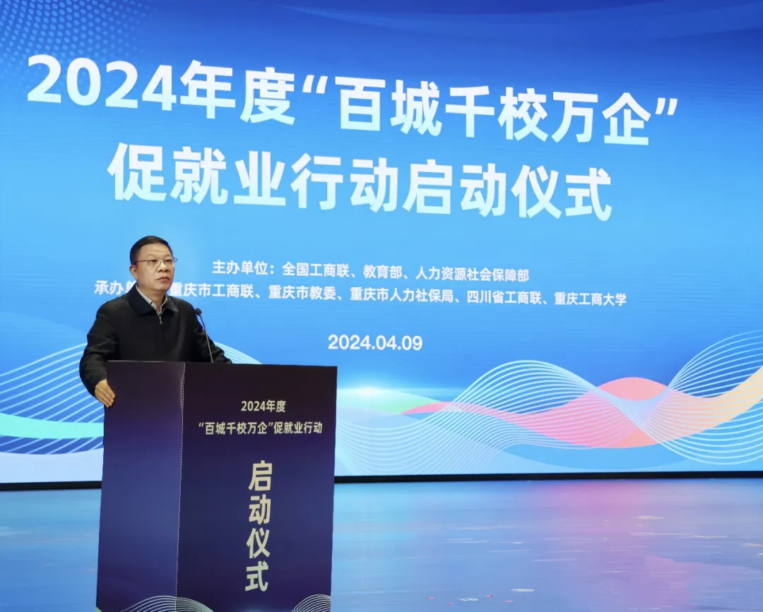 4月9日,由全國工商聯(lián)、教育部、人力資源和社會保障部主辦,重慶市工商聯(lián)、重慶市教委、重慶市人力社保局、四川省工商聯(lián)、重慶工商大學(xué)承辦的2024年度“百城千校萬企”促就業(yè)行動啟動儀式在重慶舉行。長江電氣受邀參加啟動儀式,公司黨委書記、董事長王新城作為全國三位企業(yè)家代表之一交流發(fā)言。